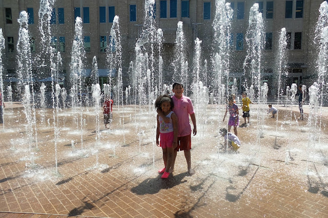 The Sundance Square plaza, has a fantastic fountain area where kids are allowed to cool off until 6pm.